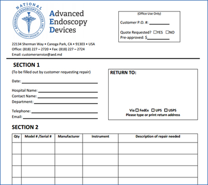 We are able to service, repair, and remanufacture endoscopic instruments most companies are not able to. Simply fill out our service and repair form and email it back to us at sales@aed.md.